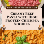 The combination of lean ground beef and chickpea flour pasta creates a hearty dish rich in protein, making it perfect for anyone looking to fuel their body with nourishing ingredients while still indulging in a creamy pasta dinner.